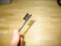 This is my favorite type of hearing aid brush. At one end is a brush and magnet and at the other end is a wax pick.